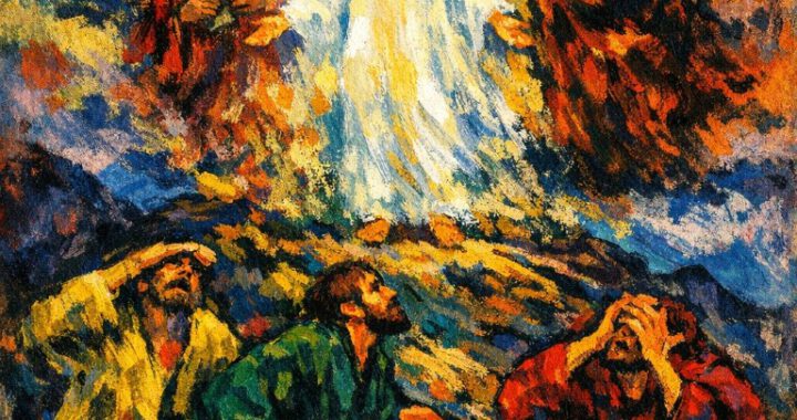 In dieser Situation hat er eine wunderbare Begegnung mit seinem Vater, dem allmächtigen Gott. Er geht mit Petrus, Johannes und Andreas auf einen Berg, wo er Mose und Elija „trifft“, Vertreter des Alten Bundes, den Gott mit seinem Volk geschlossen hatte.