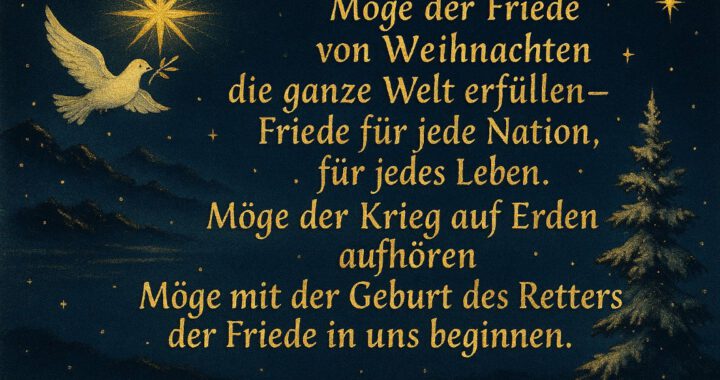 Möge der Friede von Weihnachten die ganze Welt erfüllen –